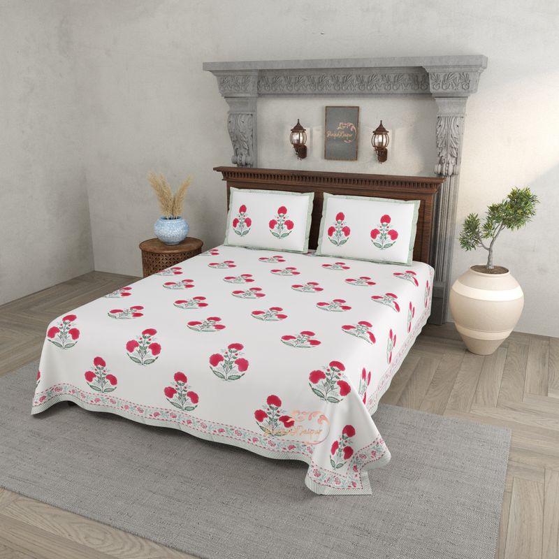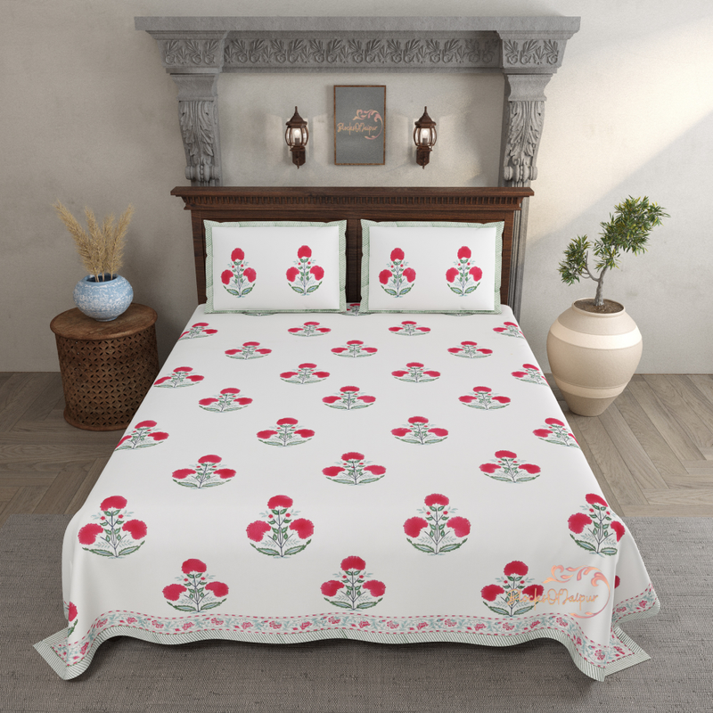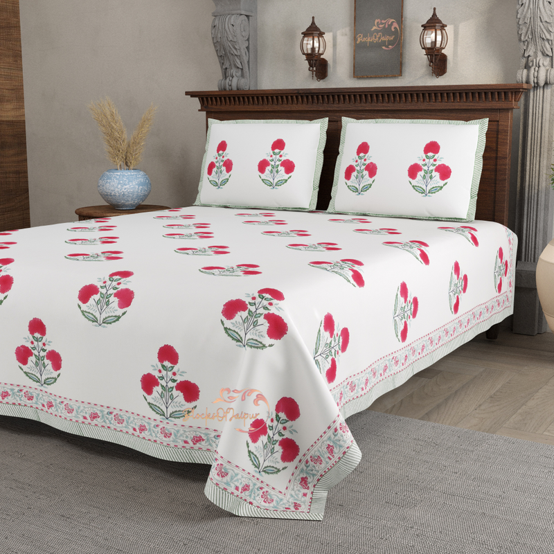 INDIAN DESIGN BEDSHEET, Hand Block Print Bedsheet with 2 Pillow Cover Bedroom Home Decor Flower Bedsheet Cotton Double For Cotton Bedsheet